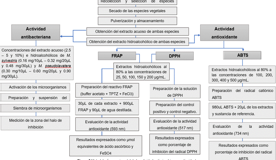 Figura 2. Metodología de la actividad antimicrobiana y antioxidante