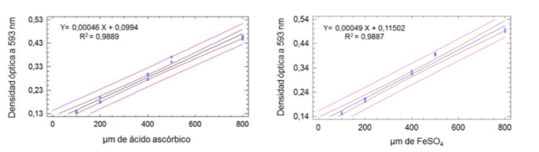 La actividad antioxidante de los extractos hidroalcohólicos fue evaluada por tres métodos que presentan múltiples mecanismos, los métodos DPPH y ATBS se basan en la eliminación de ciertos radicales y el método FRAP mide el potencial de actividad de reducción férrica, teniendo en consideración los resultados de los tres métodos in vitro ensayados se pudo constatar que a medida que aumentaba la concentración de los extractos, aumentaba el poder reductor (ensayo FRAP) y la actividad antirradicalaria (ensayos DPPH y ATBS, manifestando una elevada actividad antioxidante.